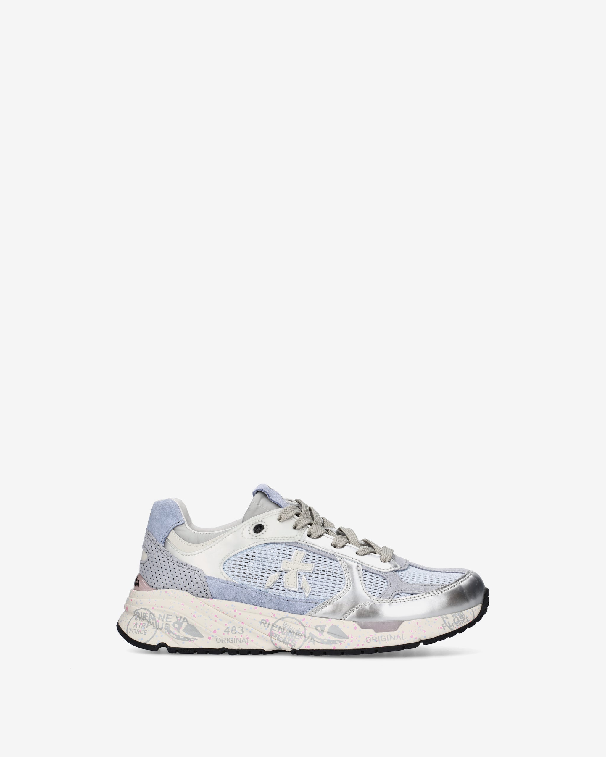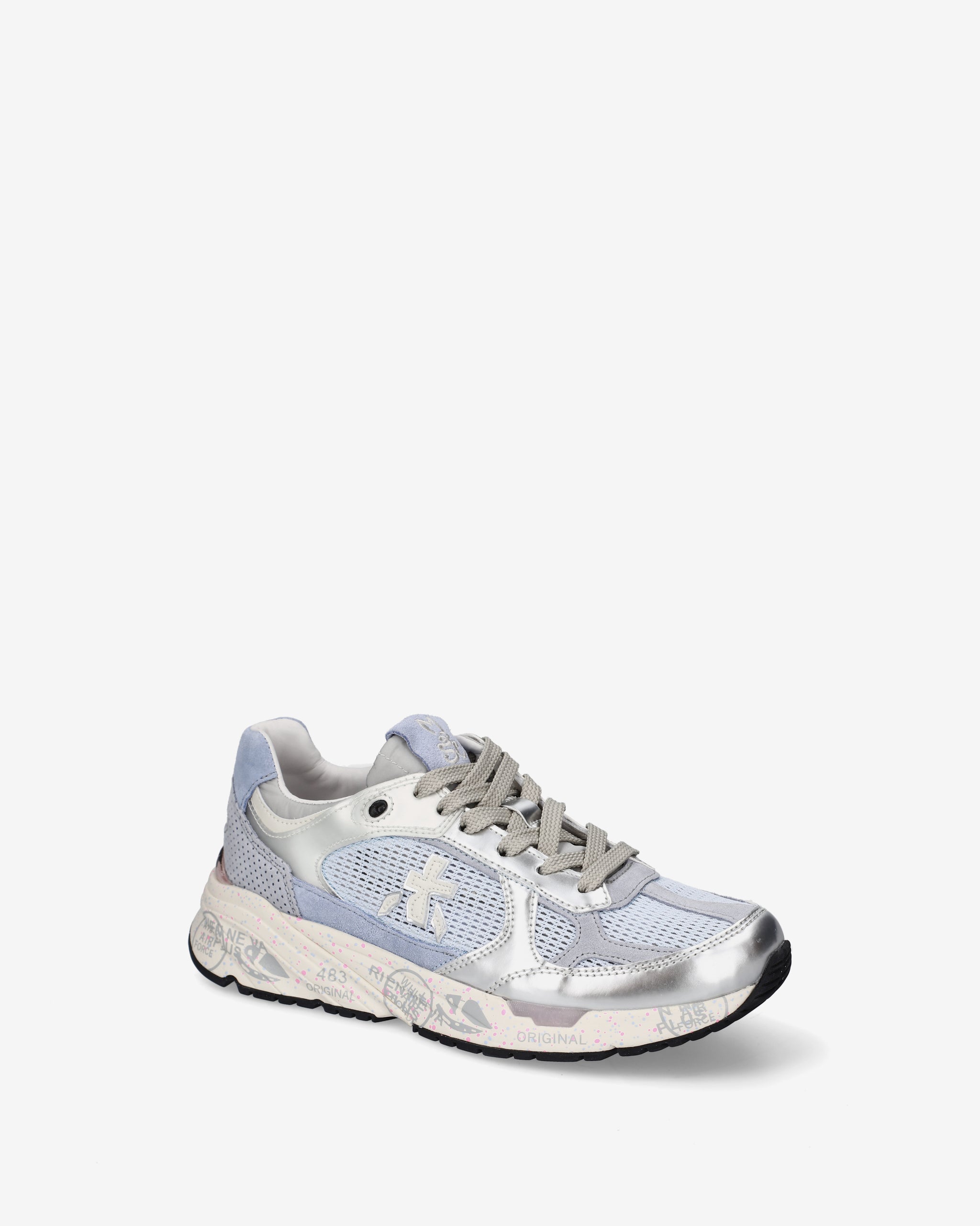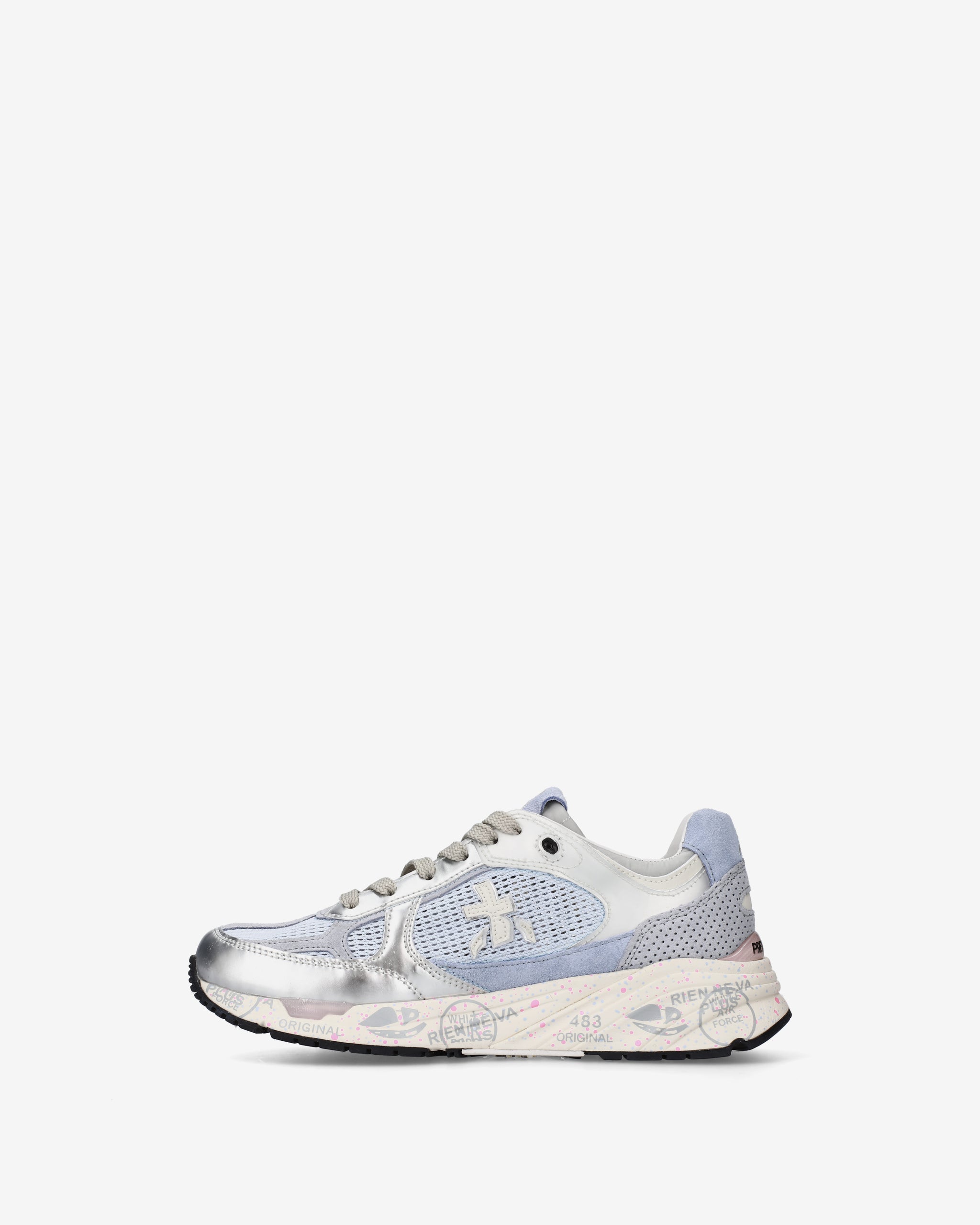 Inspired by the '90s, they combine a modern silhouette with premium materials and vibrant details. True to Premiata's design, they retain all the key elements: the logo adorning the sides, the "MASE" lettering on the label, and contrasting finishes and details that make them stand out.