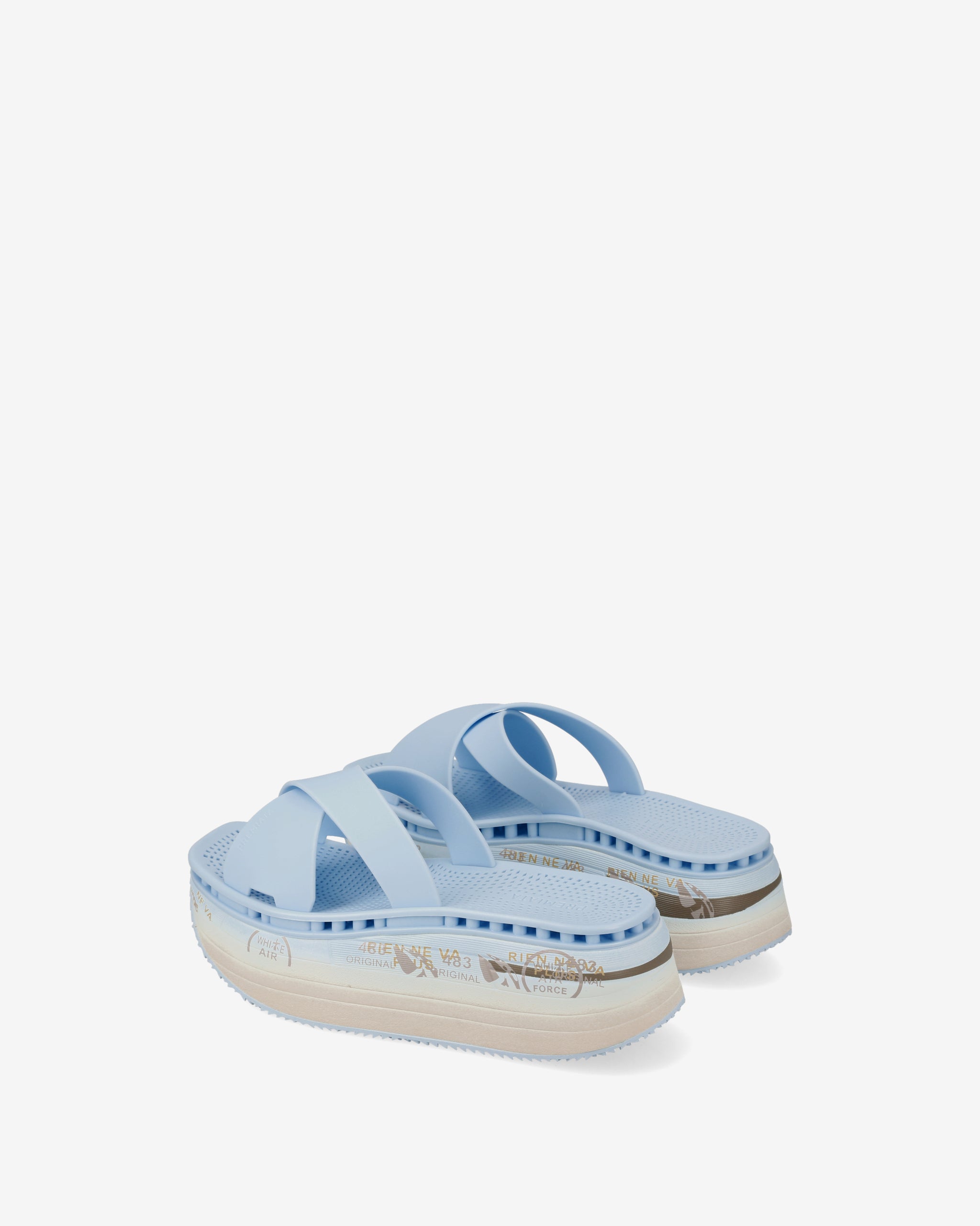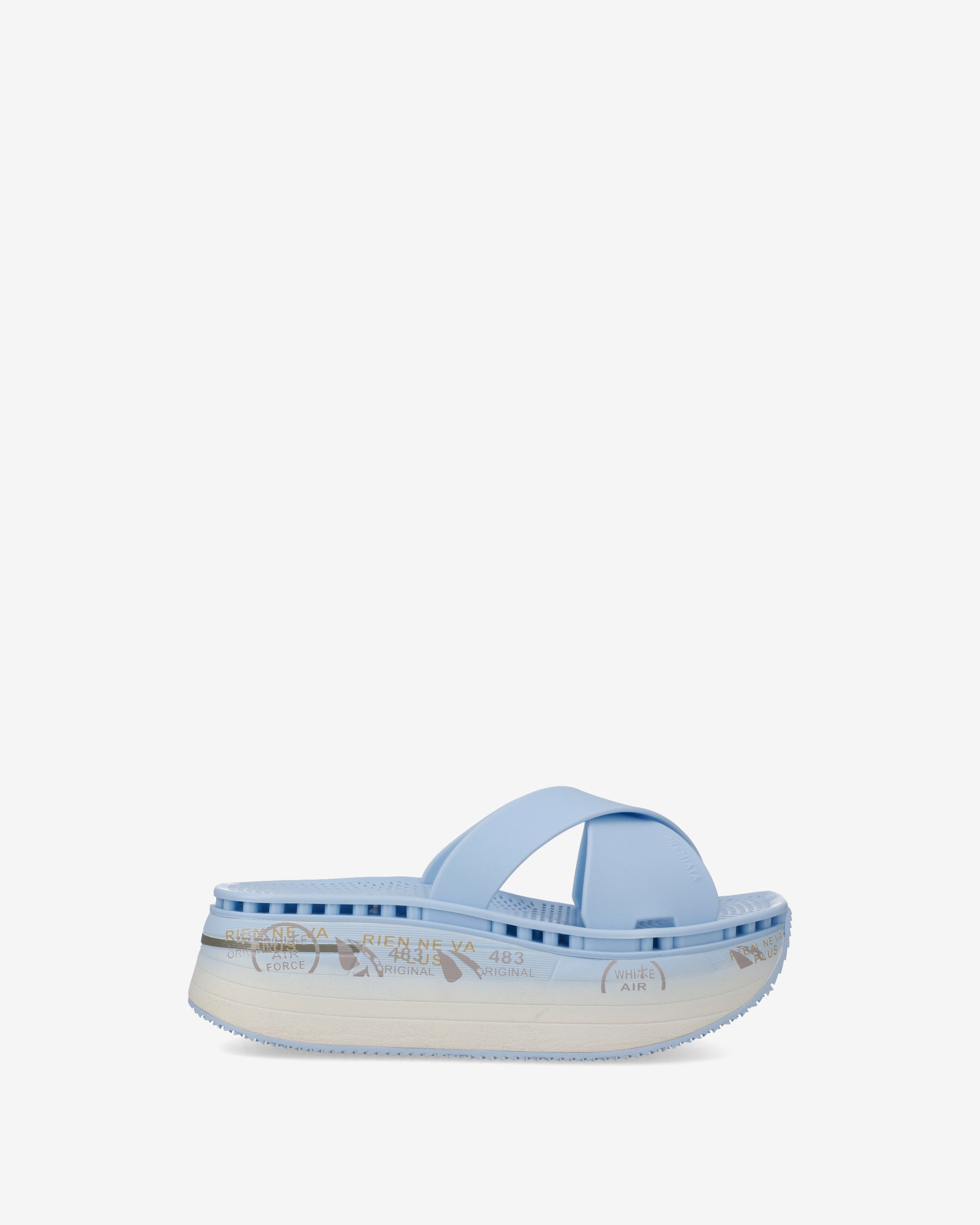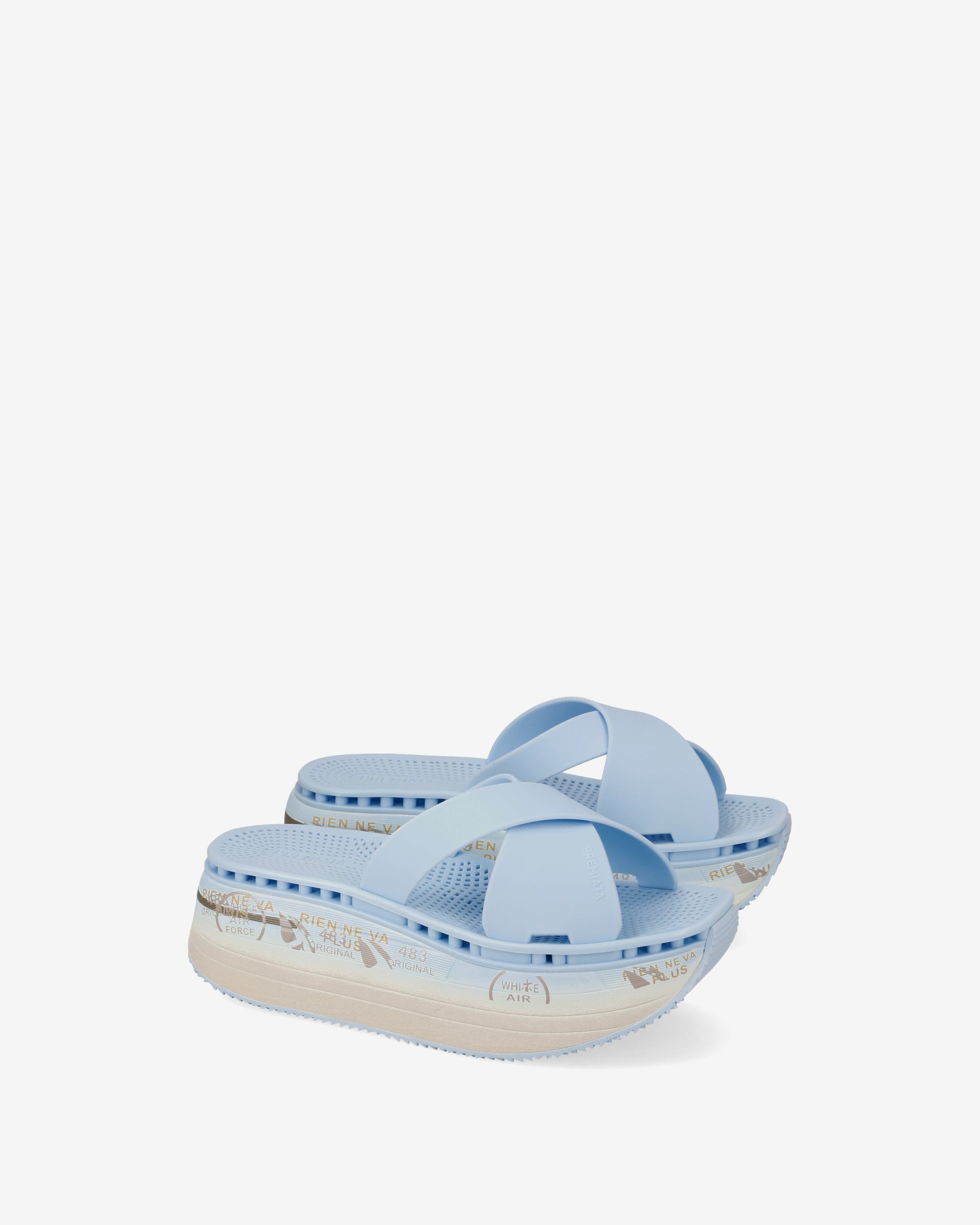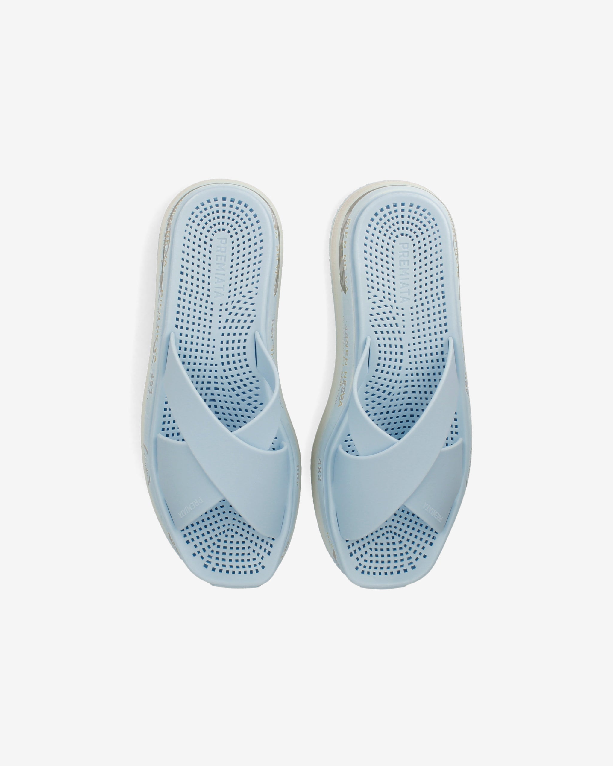 Modern platform sandals featuring a lightweight and comfortable structure. The crossed straps in durable and washable TPU ensure a stable and practical fit, ideal for everyday use. The oversized sole offers good cushioning and constant support, with graphic details that enhance the contemporary design.