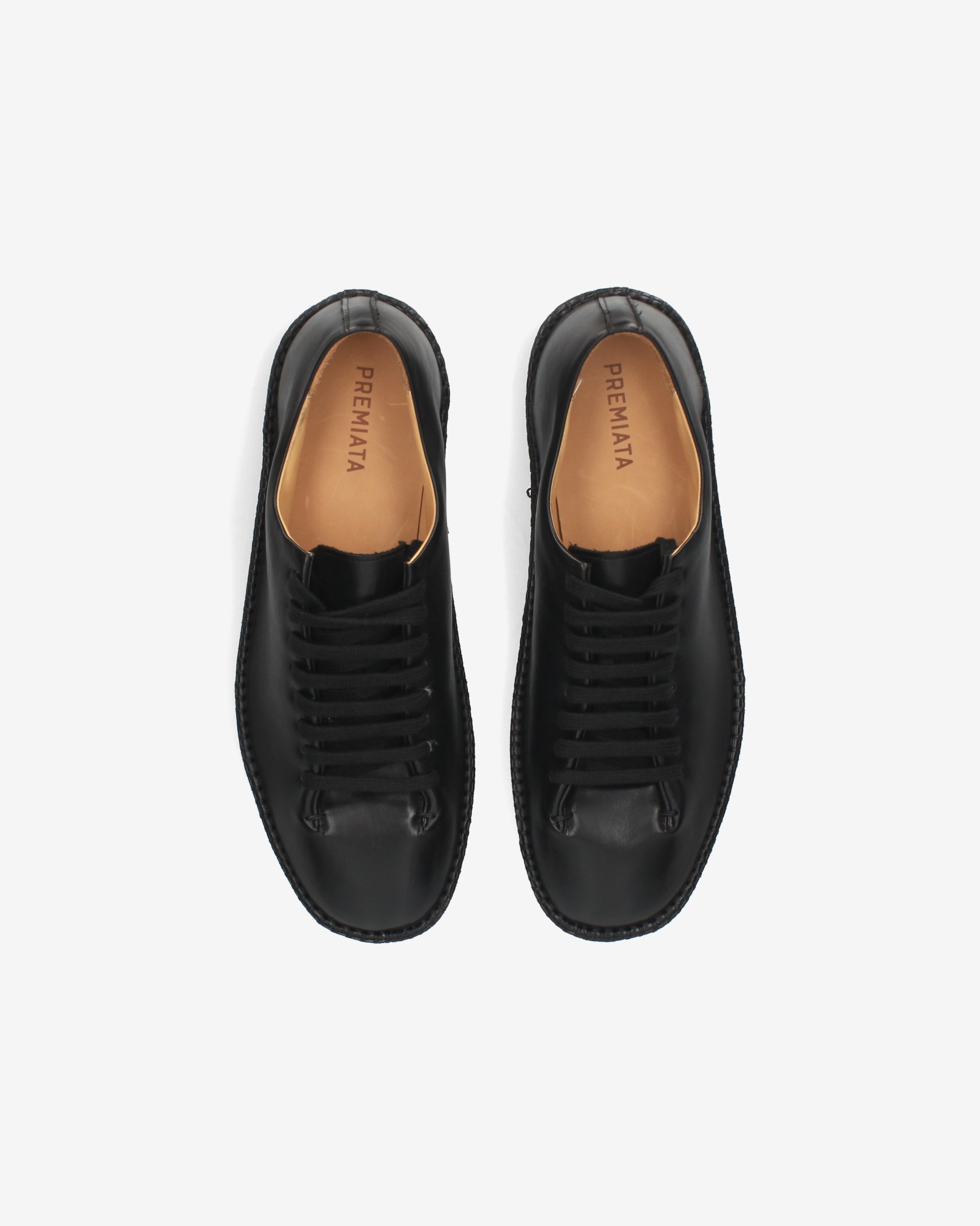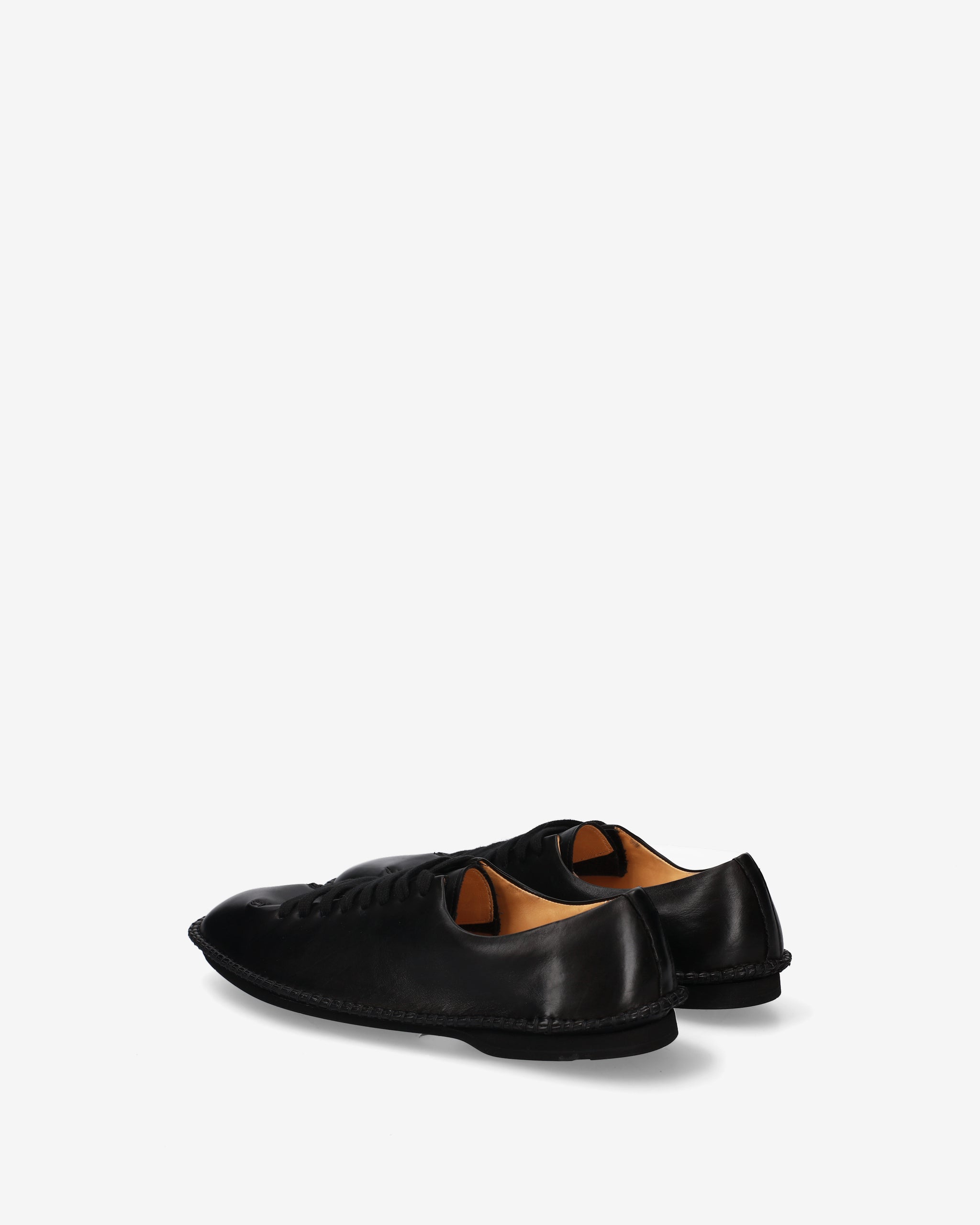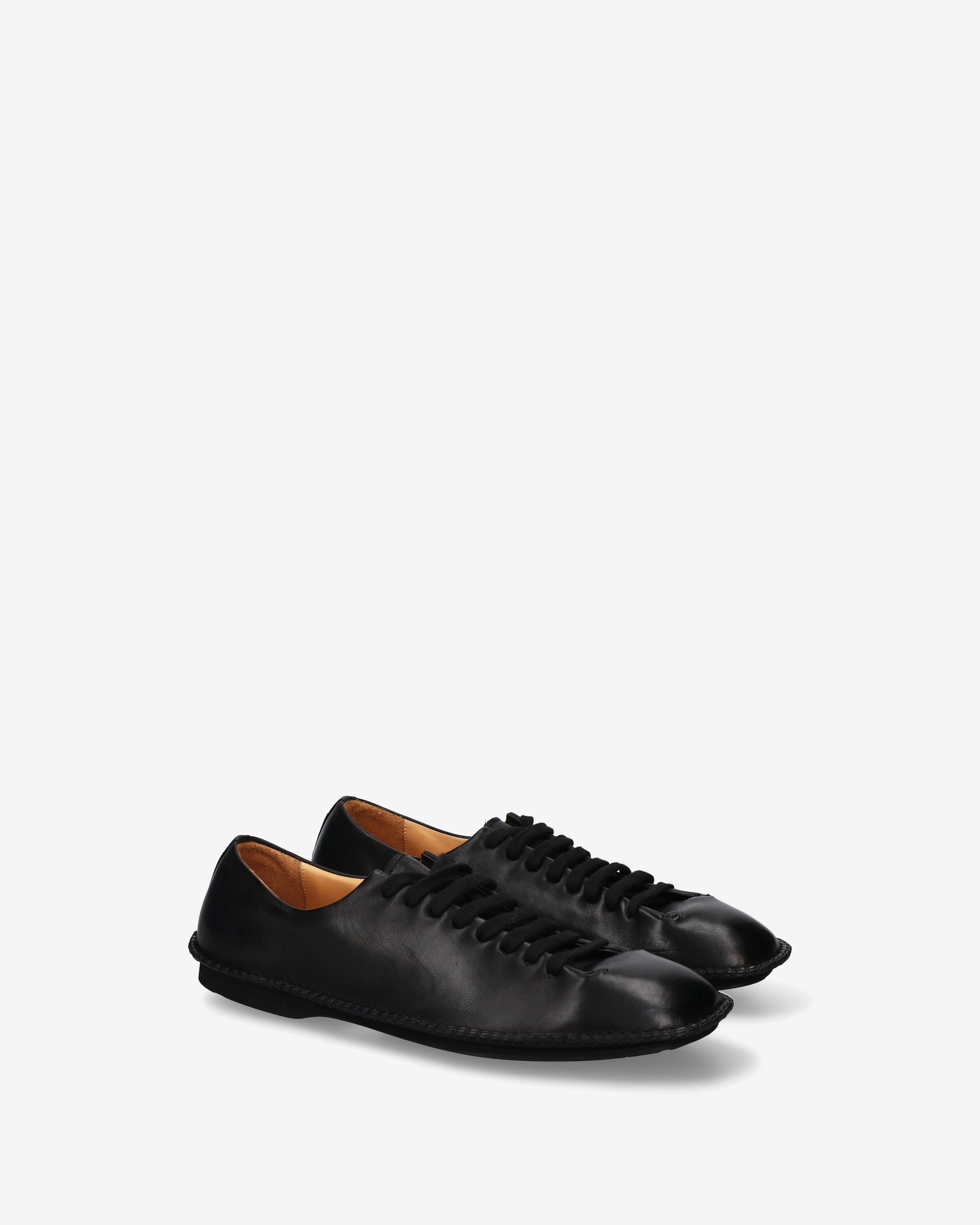 A lace-up shoe with a hybrid, ultra-minimalist design that combines the aesthetics of a deconstructed formal shoe with the comfort of an urban sneaker. The clean silhouette and absence of superstructures enhance its modern, flexible line.