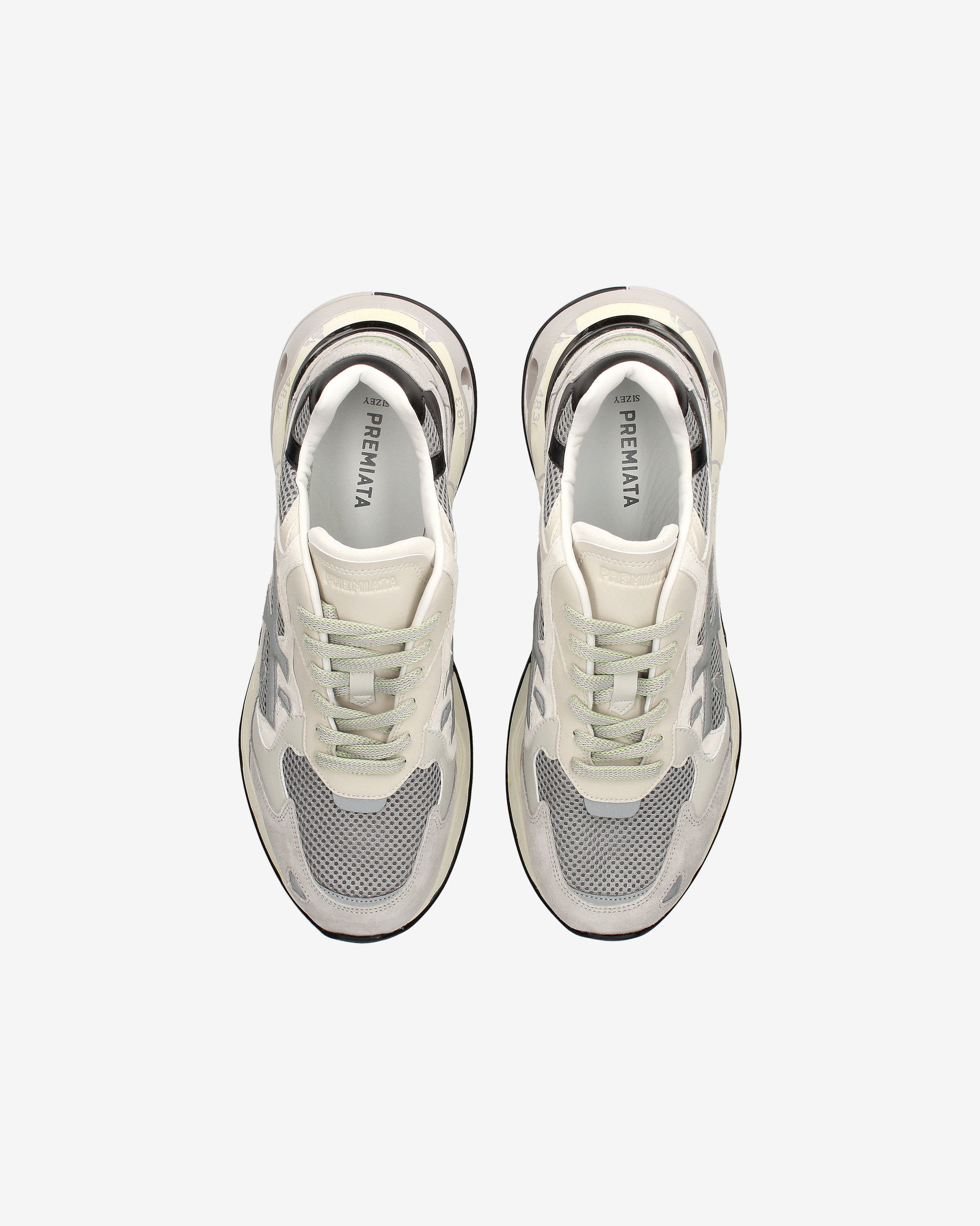 Made from innovative materials and sophisticated colors. The colors and sinuous lines are reminiscent of the cultivated hills and flowering fields of the rural landscape of the Marche region, home to Premiata's headquarters. The complexity of the sole of this sneaker makes it sophisticated and unique.
