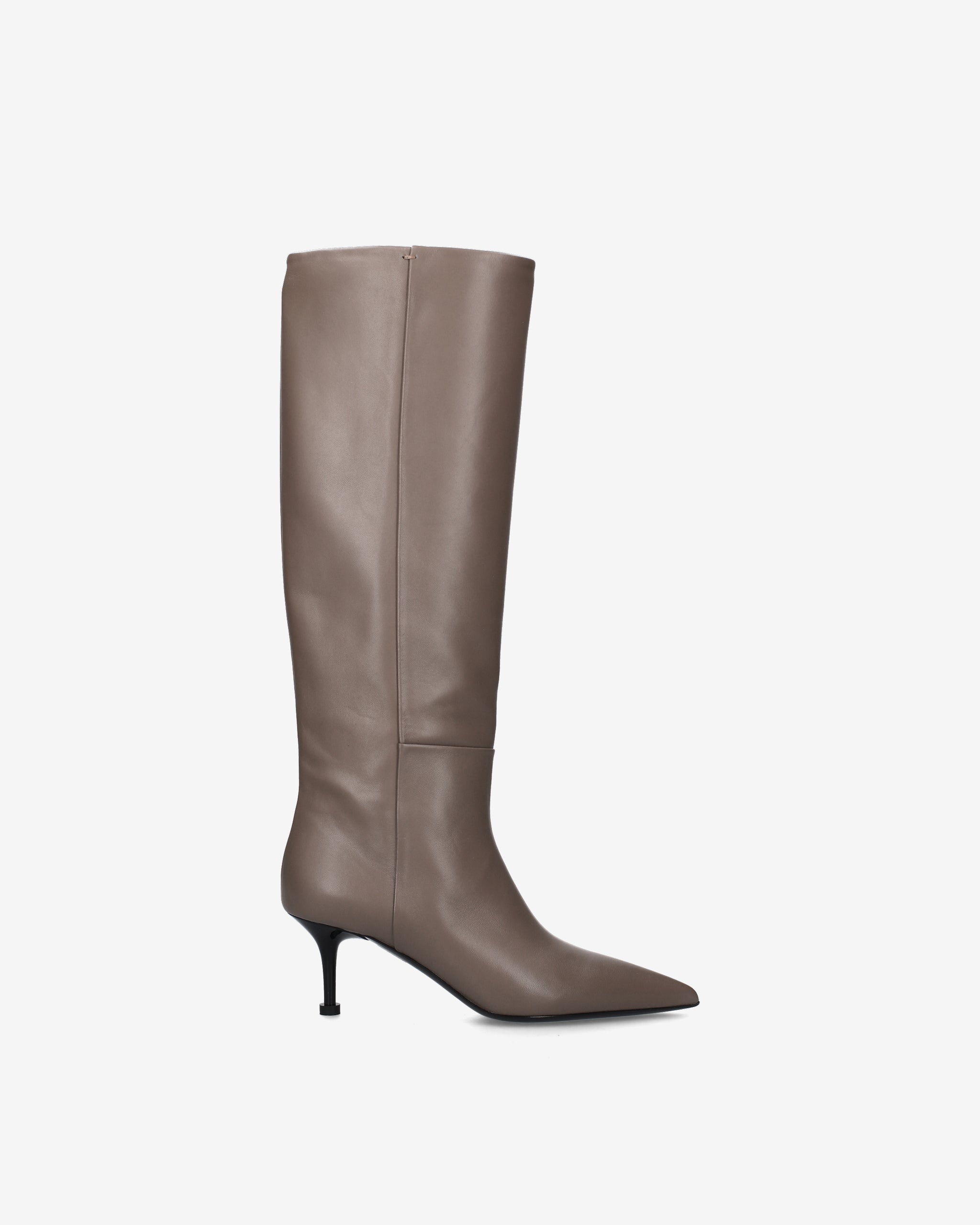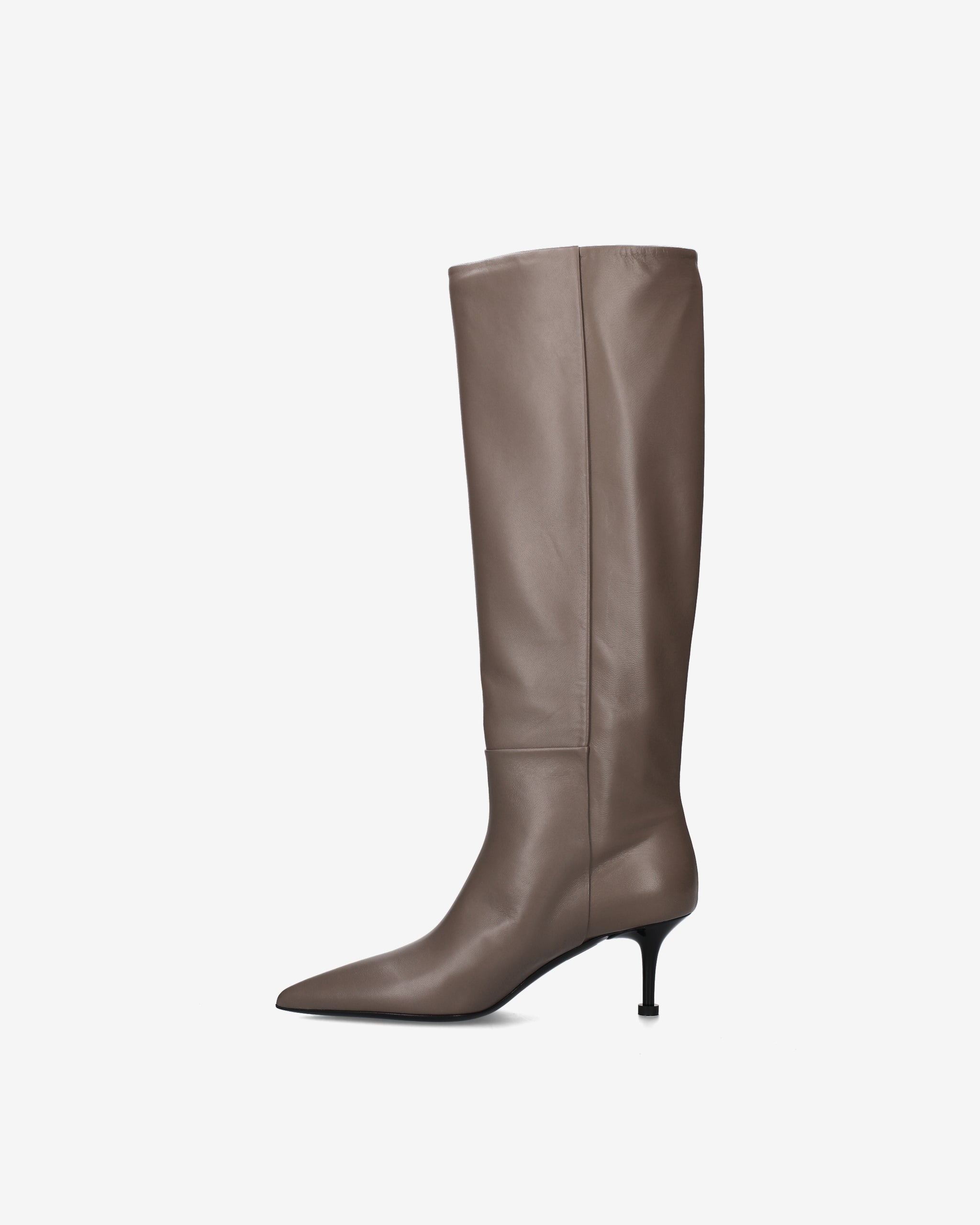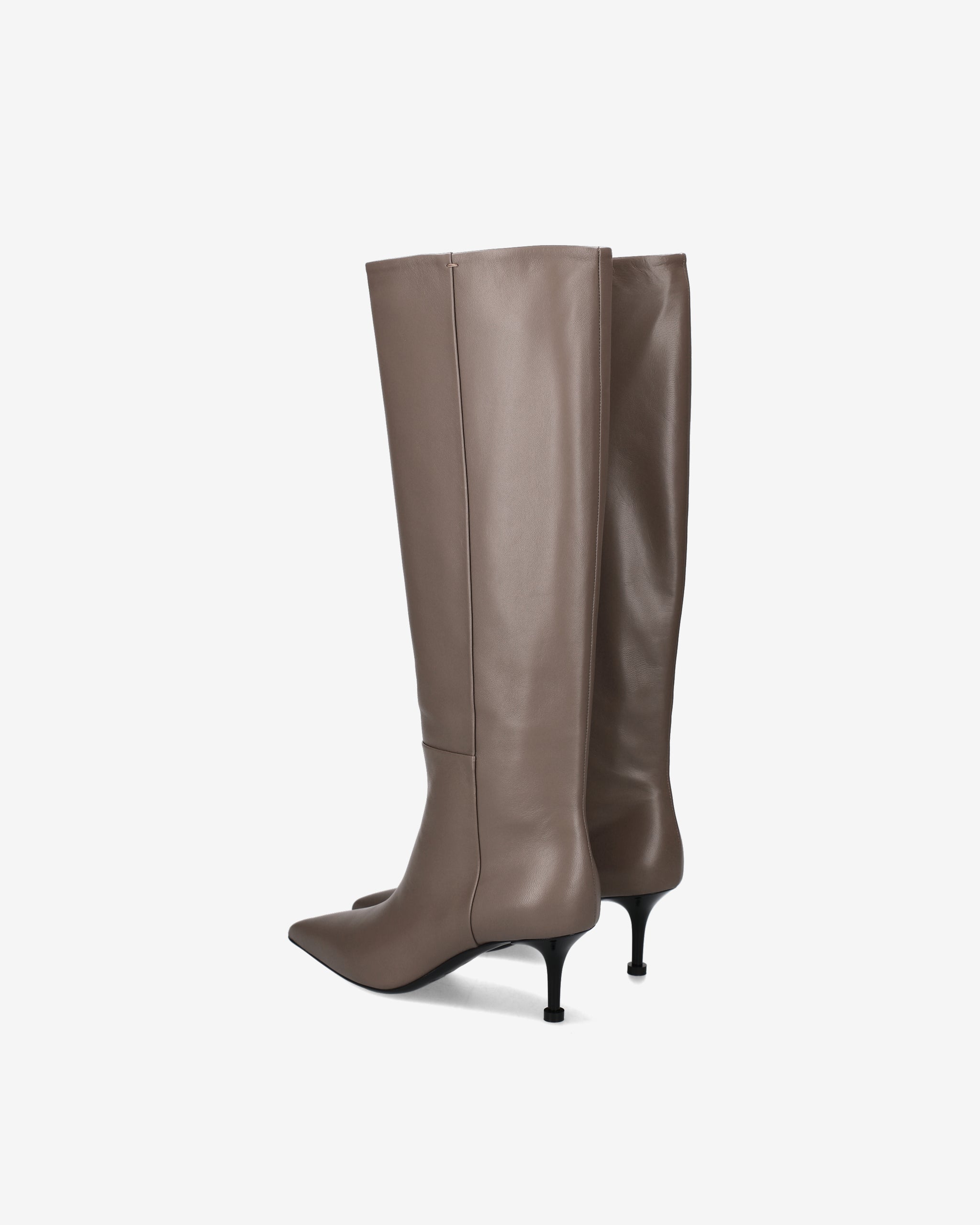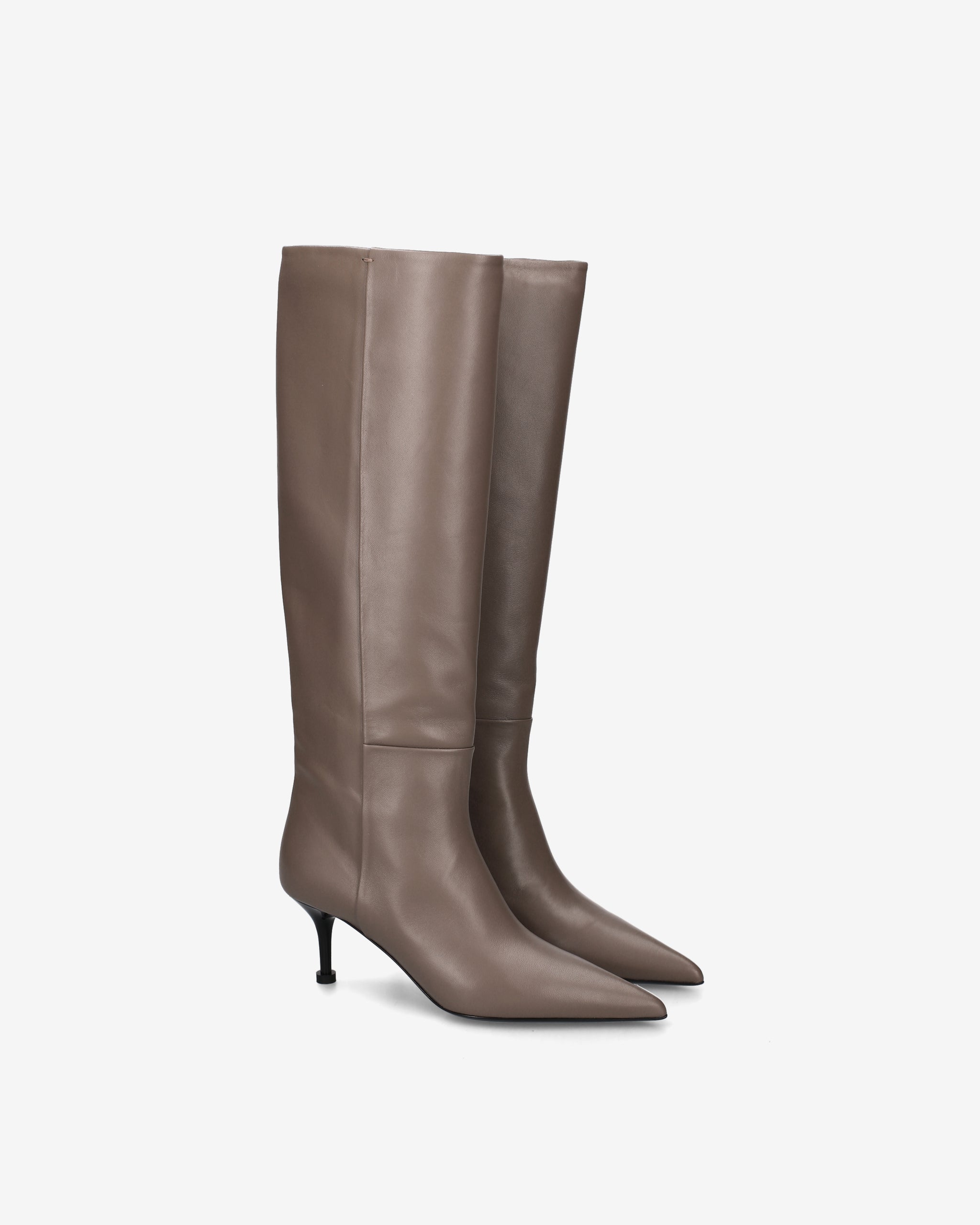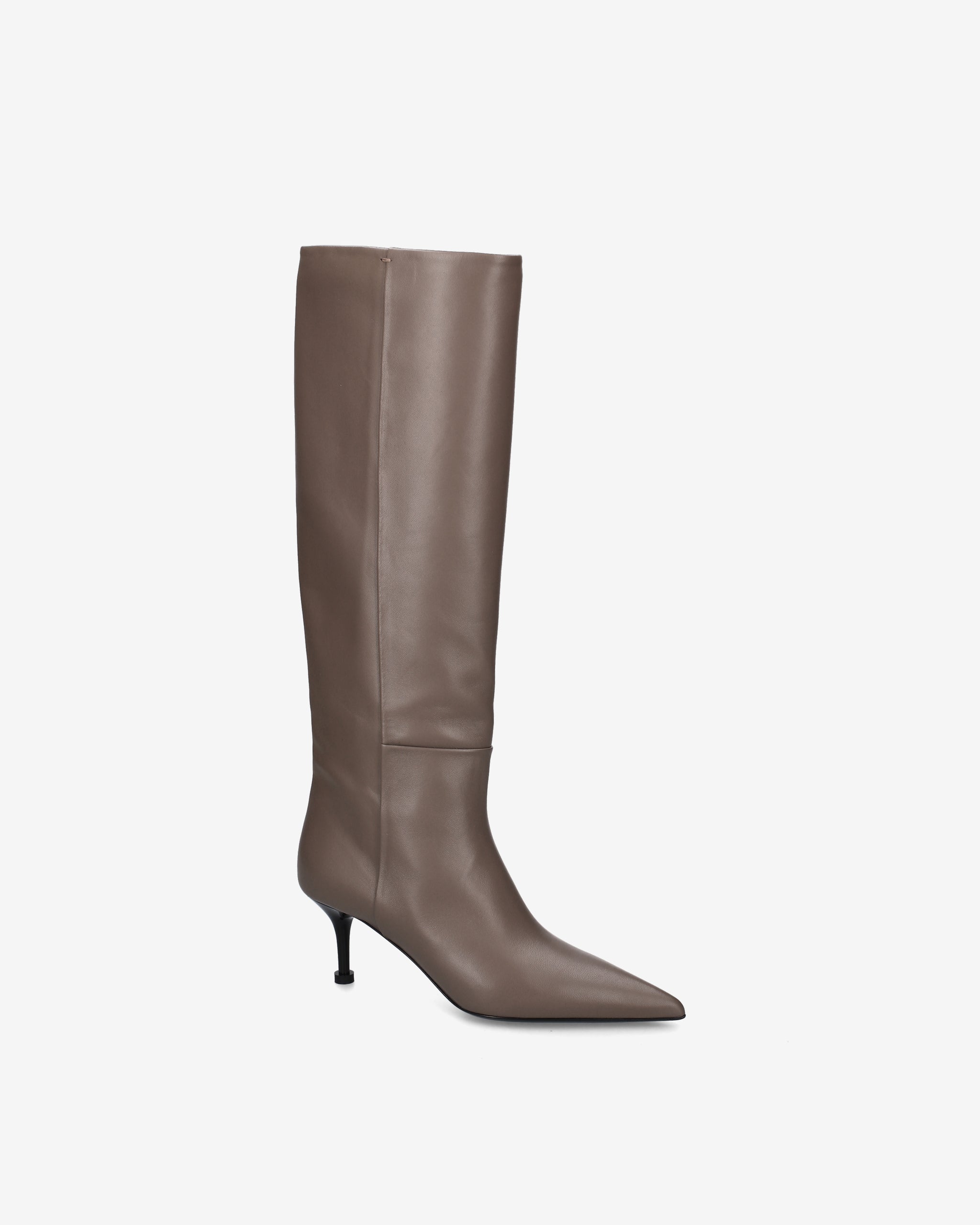 Women's boots in soft taupe nappa leather, ideal for those seeking an understated yet refined style. The clean design and quality materials make them perfect for facing winter with elegance and comfort.
